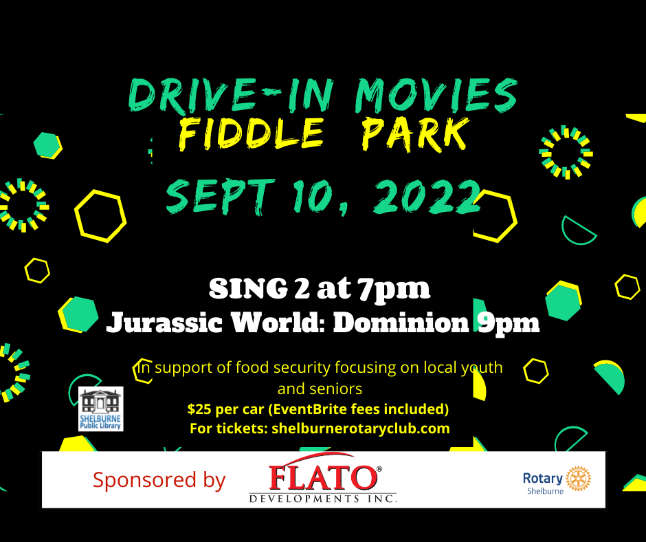 oin us for a Drive-in Movies in Fiddle Park! Thank you FLATO DEVELOPMENTS for sponsoring this event. Link below for tickets: https://www.eventbrite...